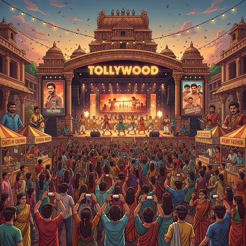 A vibrant tribute to the dazzling world of South Indian cinema and its rich cultural traditions, celebrating with powerful music and iconic magic.